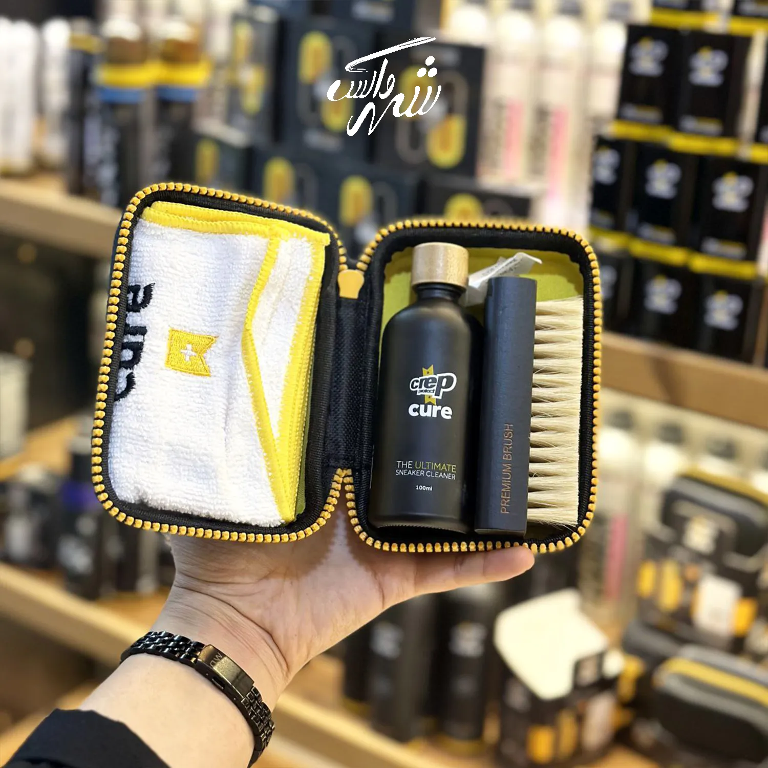 یک پک بسیار کاربردی برای اینکه همیشه کفش های شما تمیز باشد فرقی نمی کند از چه جنسی باشد کیت مسافرتی تمیز کننده کفش کرپ crep cure travel kit کفش های شما را مثل روز اول تمیز خواهد کرد. این پک شامل یک برس بسیار با کیفیت یک دستمال مایکروفایبر و یک محلول 100 میلی لیتری تمیز کننده است . کافیست چند قطره از تمیز کننده را روی برس ریخته و آن را به آب بزنید و بعد روی کفش خود بکشید تا چرک و کثیفی ها از روی کفش شما کاملا پاک شود سپس با پارچه مایکروفایبر کفش خود را تمیز کنید همین کفش شما به سرعت مثل روز اول خود نو شده است. بسته بندی این محصول یک پک بسیار قوی و زیباست که چندی سال همراه شما خواهد ماند. کمپانی کرپ پروتکت انگلستان با کیفیت ترین محصولات مراقبت از کفش را با عنوان محصولات کرپ پروتکت به بازار عرضه کرده است
