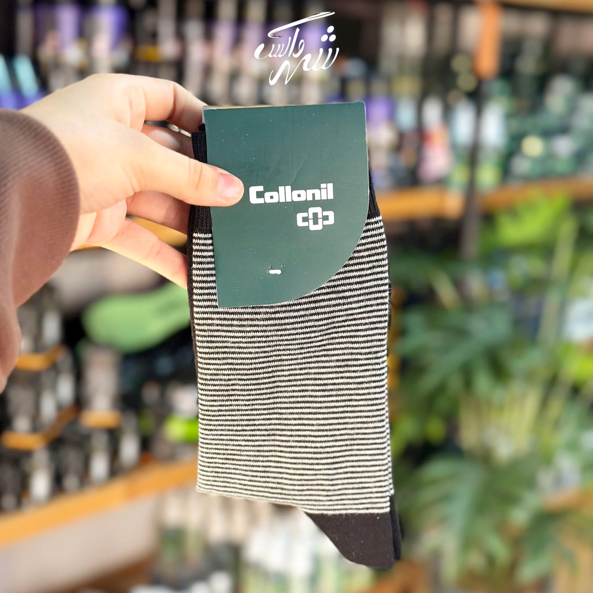 جوراب ساقدار مردانه راه راه مشکی پنبه ای